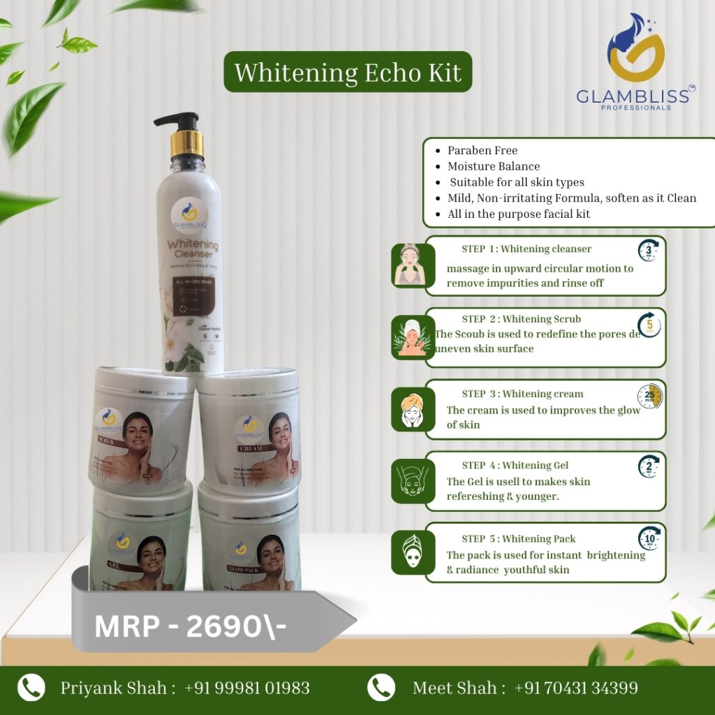 The Whitening Echo Kit is a complete skincare solution designed to brighten, even out skin tone, and reduce dullness.